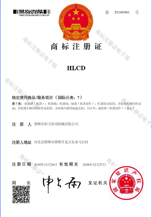 恒力商標(biāo)注冊證